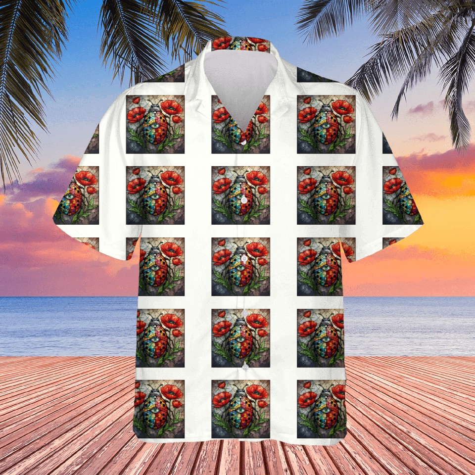Own fascinating Ladybug stained glass vibrant poppy flower insect Hawaiians or see more Hawaiians products now from Printblur shop to enjoy your shopping time!