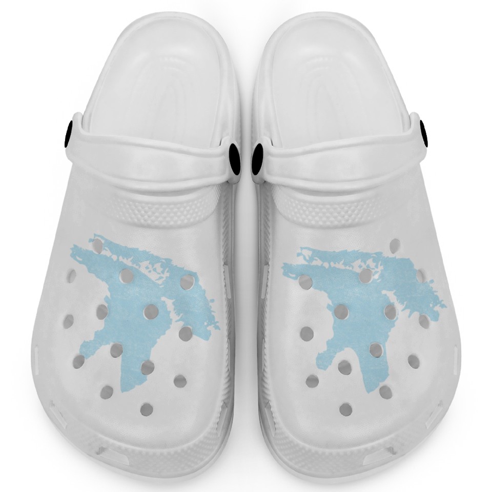 You're taking a peek at the product Lake Huron Great Lakes Clogs For Kids WHITE belong theme Clogs at Printblur