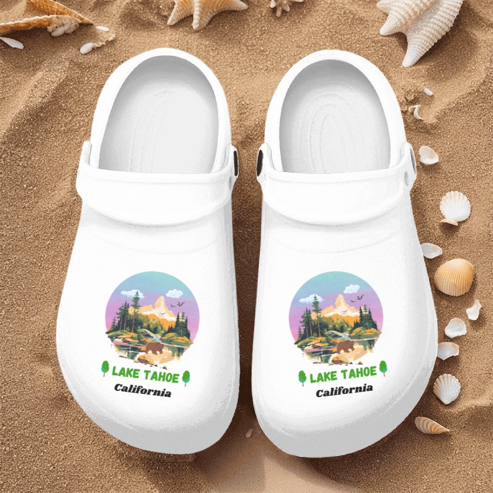 You are shopping for a stunning and trendy product Lake Tahoe California Nurse Clogs For Men WHITE belong theme Nurse Clogs at Printblur