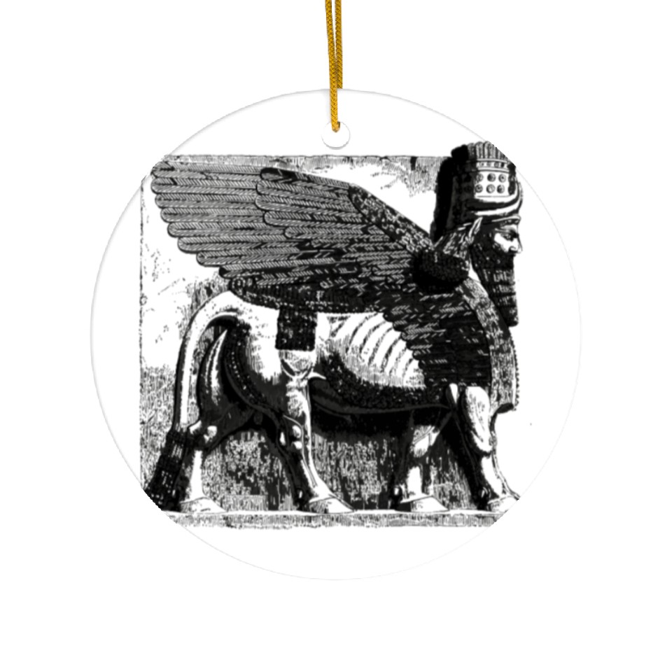 Own fascinating Lamassu Sumerian Persian Lion Bull Human Head Ceramic Ornaments or see more Ceramic Ornaments products now from Printblur shop to enjoy your shopping time!