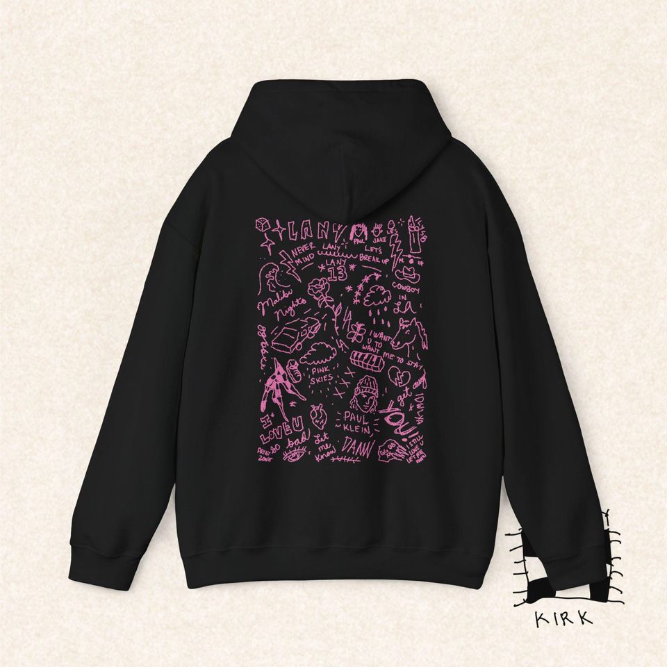 You're taking a peek at the product LANY Hoodie Doodle - Tees By Kirk Unisex Heavy Blend Hooded Sweatshirt For Youth Black belong theme Double Sided Hoodies at Printblur