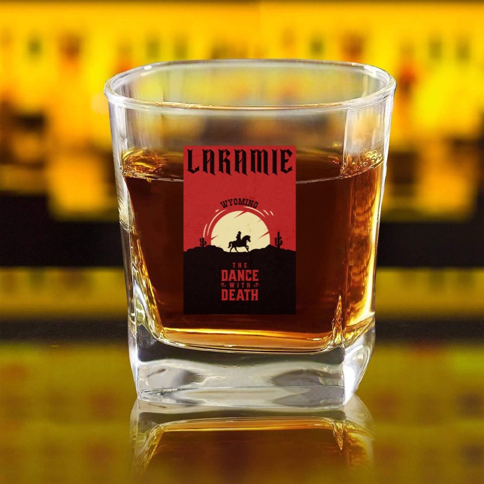 Laramie Wyoming wild west town Square Whiskey Glasses