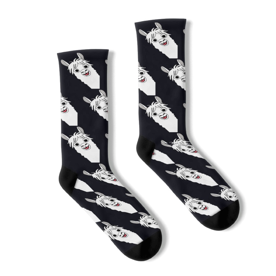 You're searching for a one-of-a-kind product Laughing alpaca comic lama in white with big eyes Socks For Black belong theme Socks at Printblur