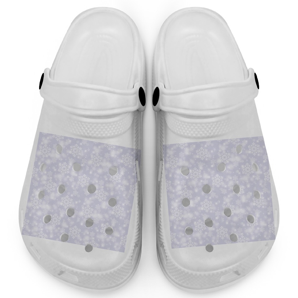 The item hot trend you're looking at is Lavender Snowflakes Pattern Clogs For Kids WHITE belong theme Clogs at Printblur