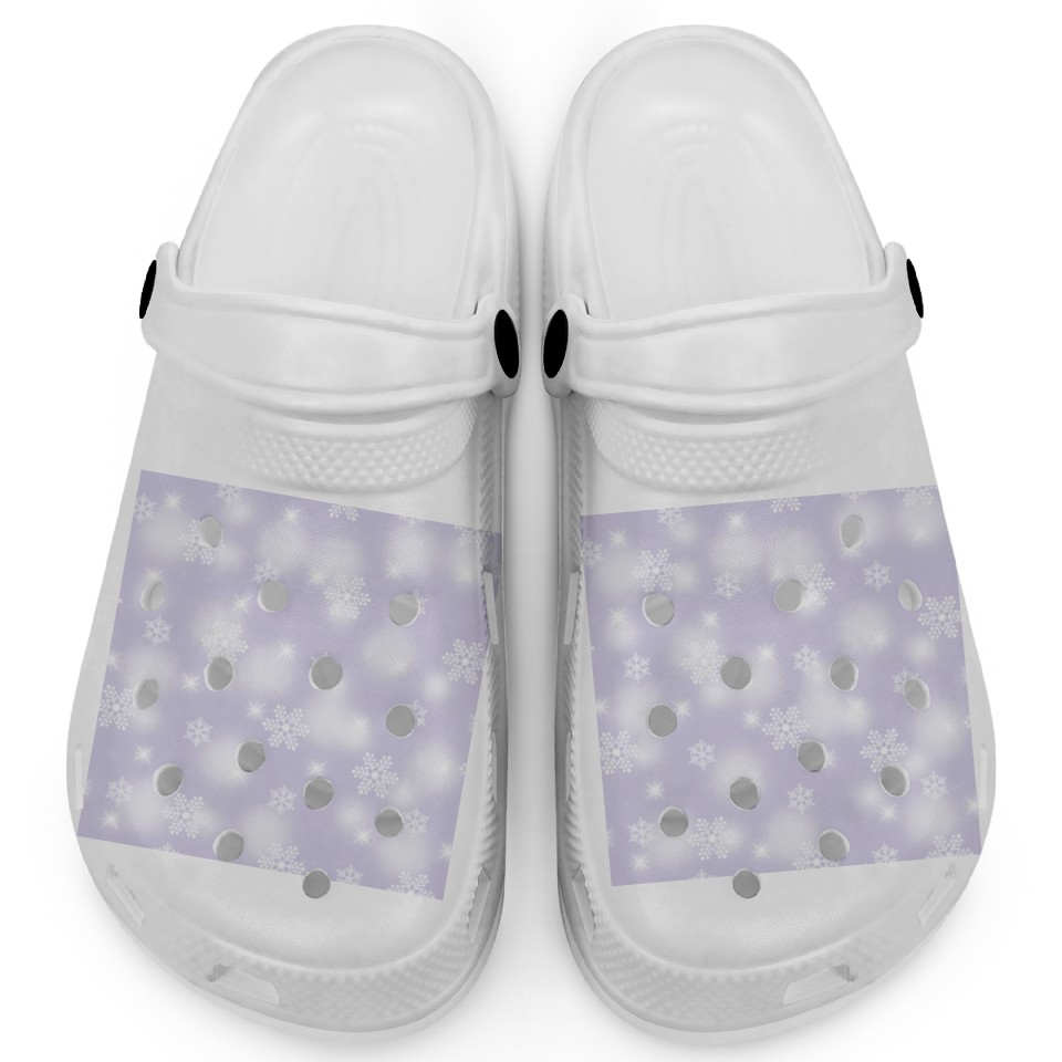 You are seeing a unique and impressive product Lavender Snowflakes Pattern Clogs For Kids WHITE belong theme Clogs at Printblur