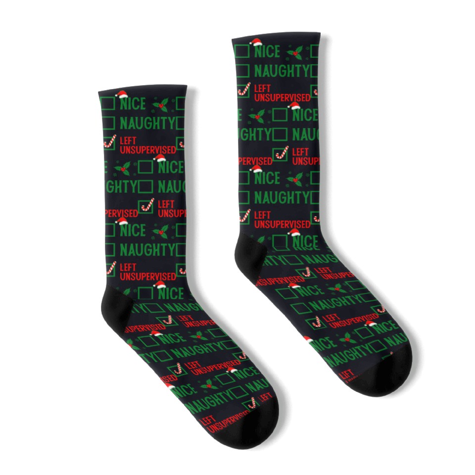 The item hot trend you're looking at is Left Unsupervised Christmas Checklist Socks For Black belong theme Socks at Printblur