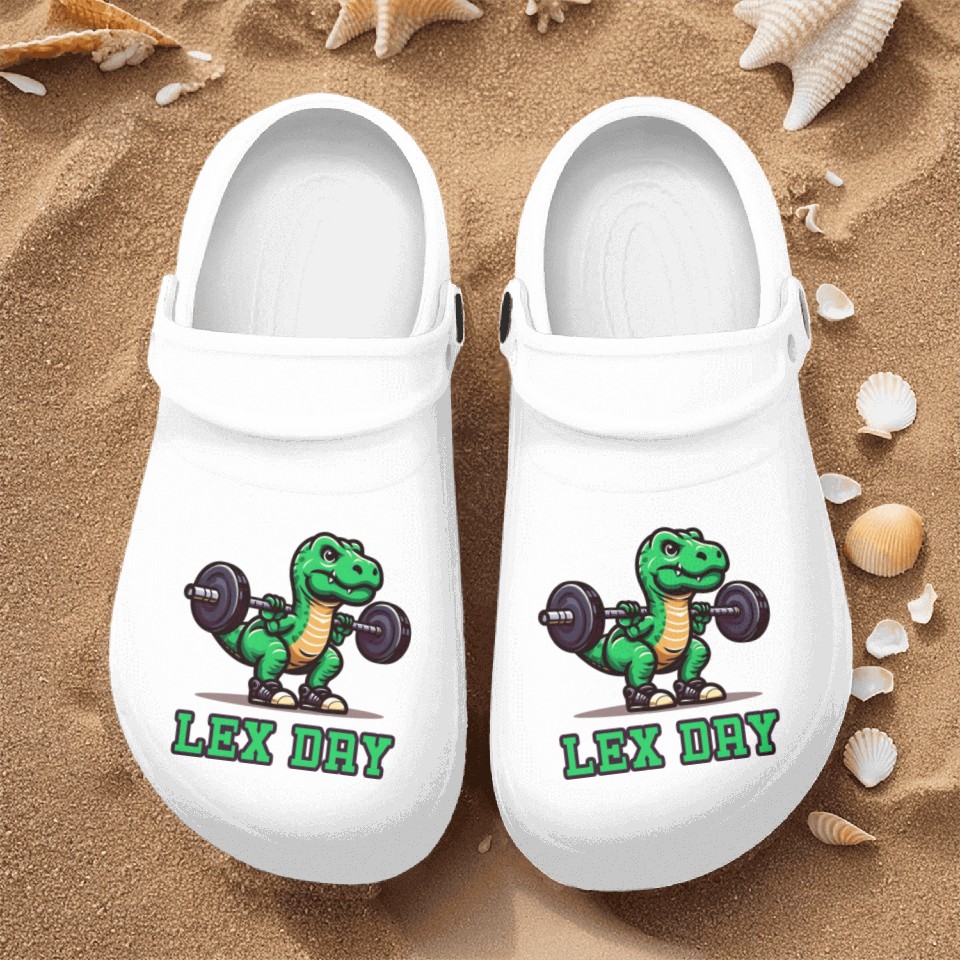 You're looking at the eye-catching product Legs day funny gym dino Nurse Clogs For Men WHITE belong theme Nurse Clogs at Printblur