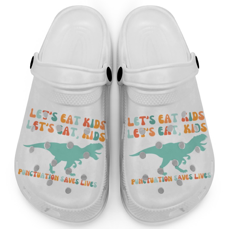 Let's Eat Kids Punctuation Saves Lives Clogs