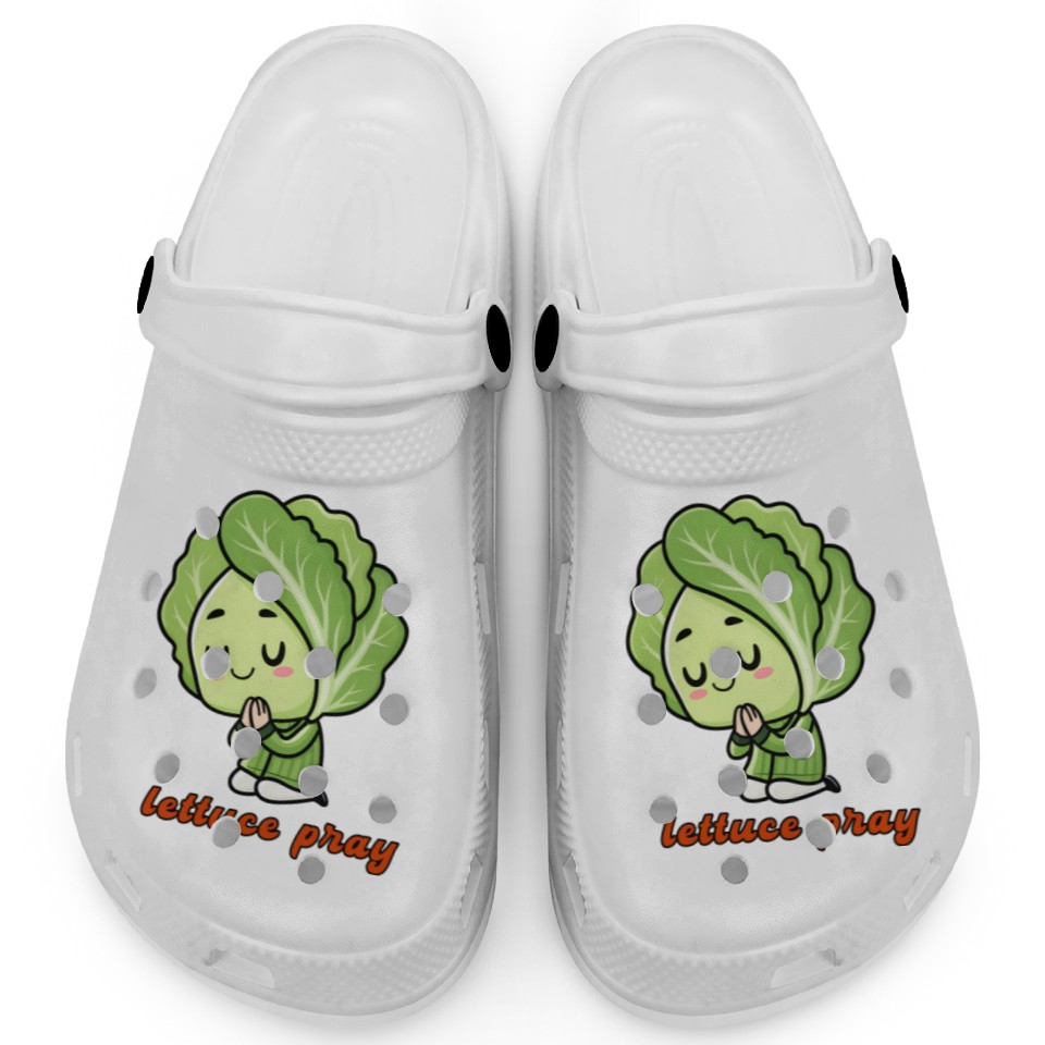 You're looking at the eye-catching product Lettuce pray not Let us pray Clogs For Kids WHITE belong theme Clogs at Printblur