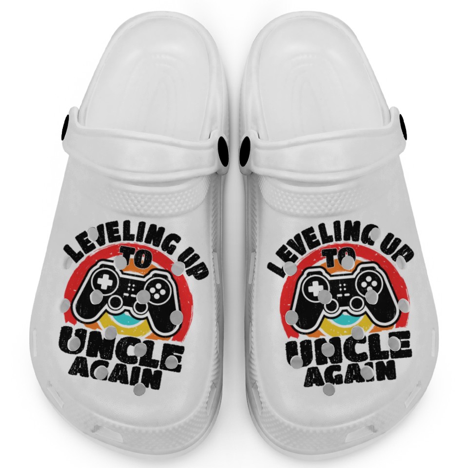 You're taking a peek at the product Leveling Up To Uncle Again Gamer Promoted To Uncle Clogs For Kids WHITE belong theme Clogs at Printblur