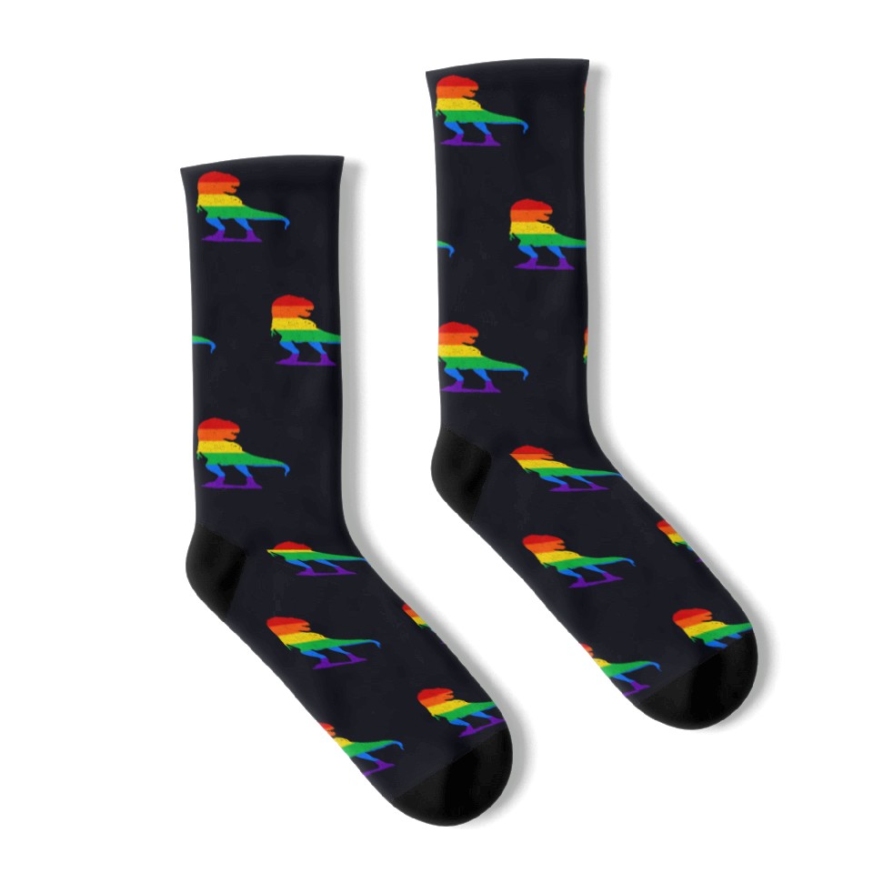 Buy eye-catching LGBT Dinosaur Rainbow Flag Socks or see more Socks products at Printblur shop now to explore many surprises from our shop!
