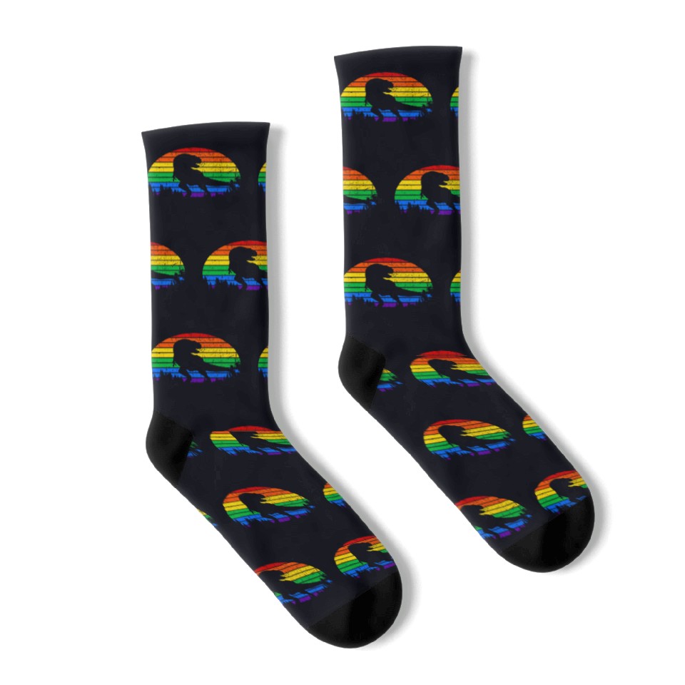 Shop for impressive LGBT Dinosaur Rainbow Flag Socks or see more Socks products right now on Printblur to enjoy your happiness!
