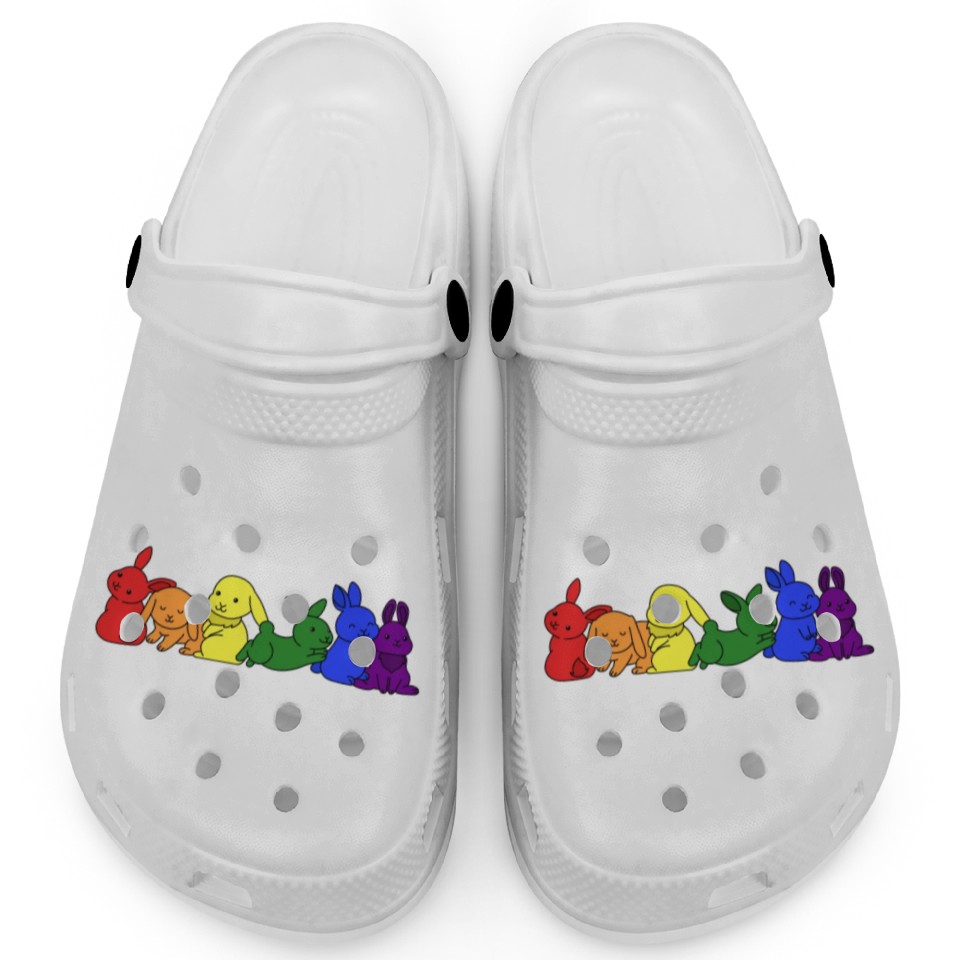 Shop for attractive LGBT+ Flag Bunny Design for proud LGBT+ People Clogs or see more Clogs products on https://printblur.com right now!
