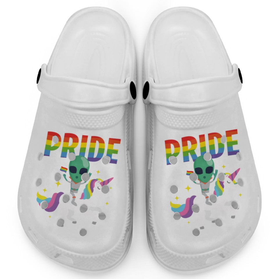 Shop for attractive LGBT Gay Lesbian Pride Flag Funny Alien Unicorn Clogs or see more Clogs products on https://printblur.com right now!