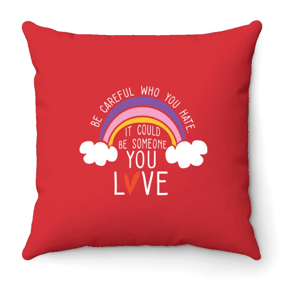 Own fascinating LGBTQ Be Careful Who You Hate Rainbow Pride Gay Throw Pillows or see more Throw Pillows products now from Printblur shop to enjoy your shopping time!