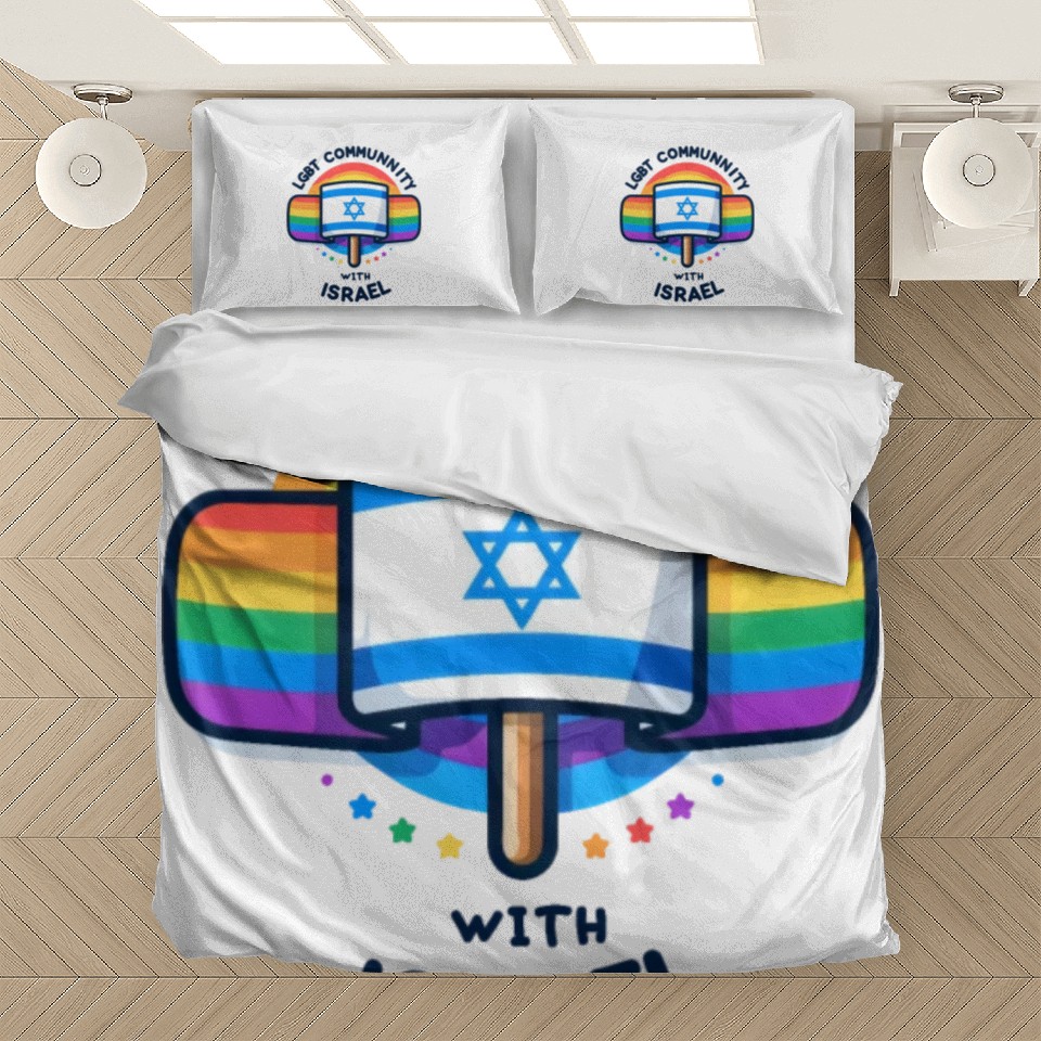Buy eye-catching LGBTQ community STANDS WITH ISRAEL Bedding Sets or see more Bedding Sets products at Printblur shop now to explore many surprises from our shop!