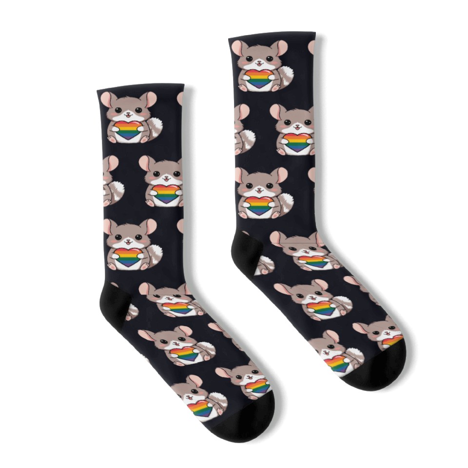 Own fascinating LGTBQ Chinchilla Holding Rainbow Heart Cute Pride Socks or see more Socks products now from Printblur shop to enjoy your shopping time!