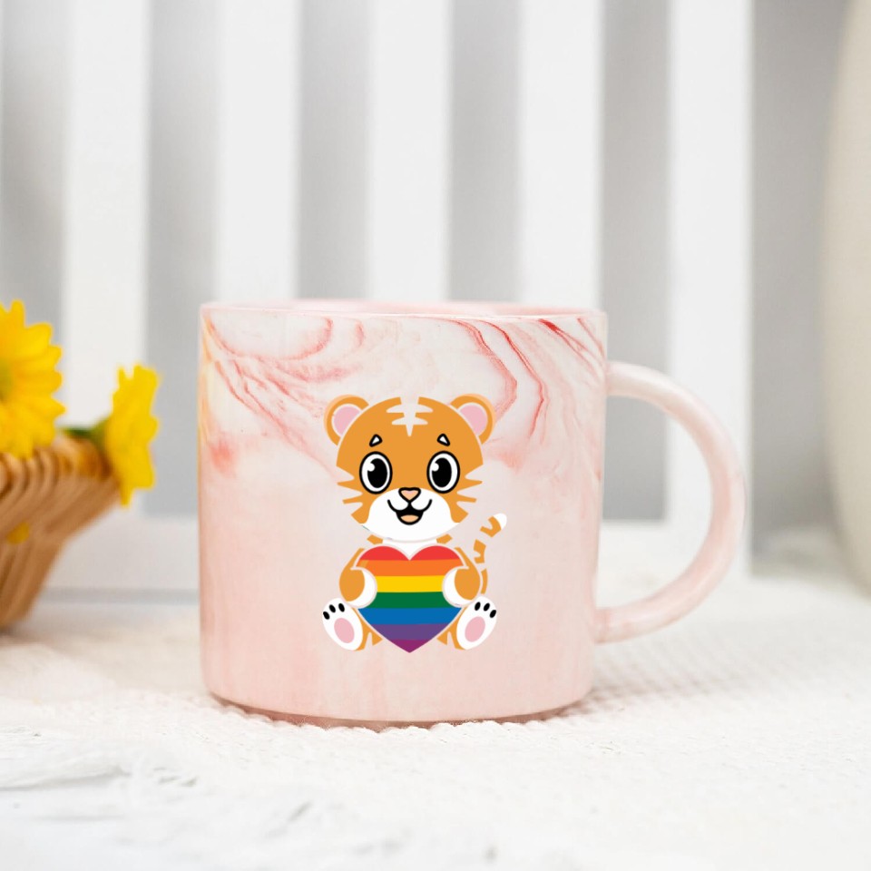 The item hot trend you're looking at is LGTBQ Tiger Holding Rainbow Heart Marble Mugs For Pink belong theme Marble Mugs at Printblur