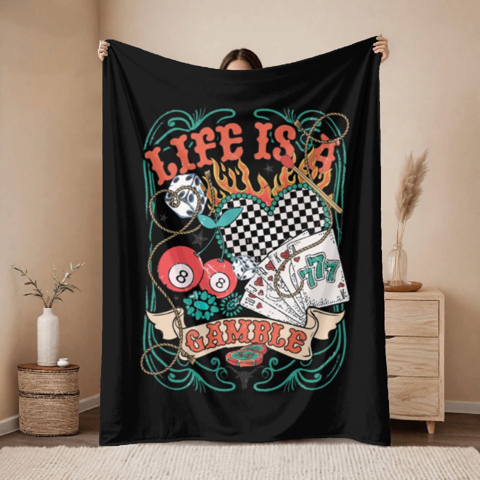 You are seeing a unique and impressive product Life Is A Gamble Retro Poker Player Throw Blankets For Black belong theme Throw Blankets at Printblur