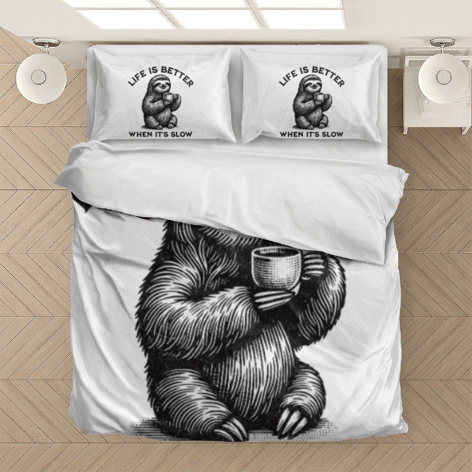 Shop for impressive Life Is Better When It's Slow Peaceful Calm Sloth Bedding Sets or see more Bedding Sets products right now on Printblur to enjoy your happiness!
