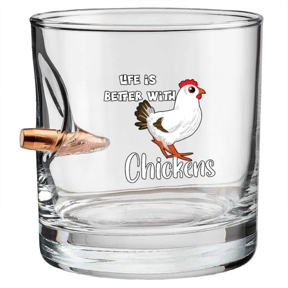 Shop for impressive Life Is Better with Chickens Cartoon Funny Chick Bullet Whiskey Glasses or see more Bullet Whiskey Glasses products right now on Printblur to enjoy your happiness!