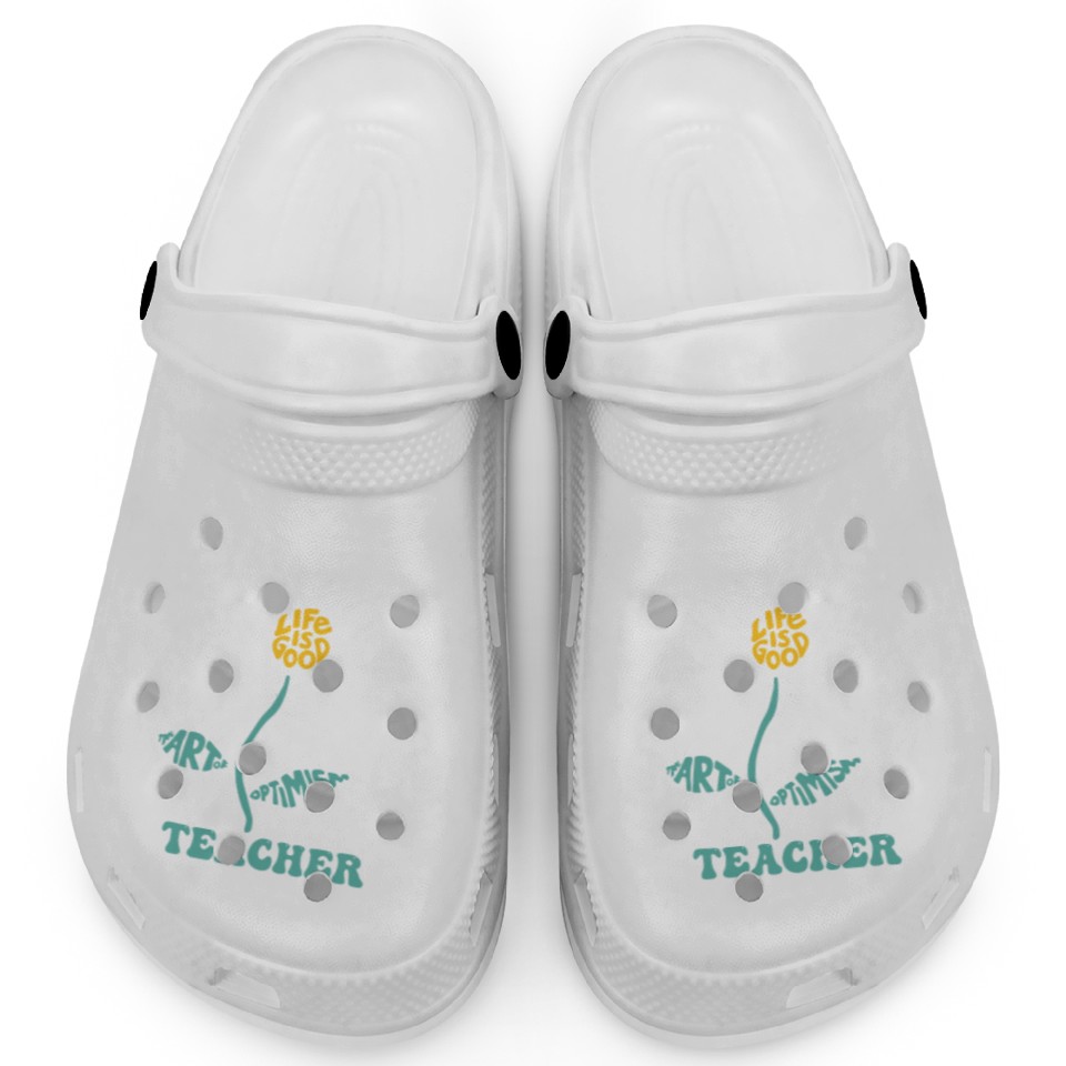 Life-is Good Teacher Humor Courage Openness Fun Lo Clogs