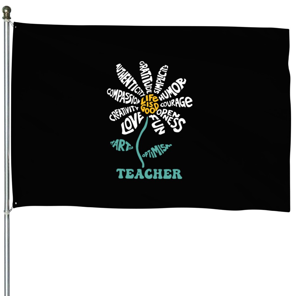 You're searching for a one-of-a-kind product Life-is Good Teacher Humor Courage Openness Fun Lo House Flags For Black belong theme House Flags at Printblur