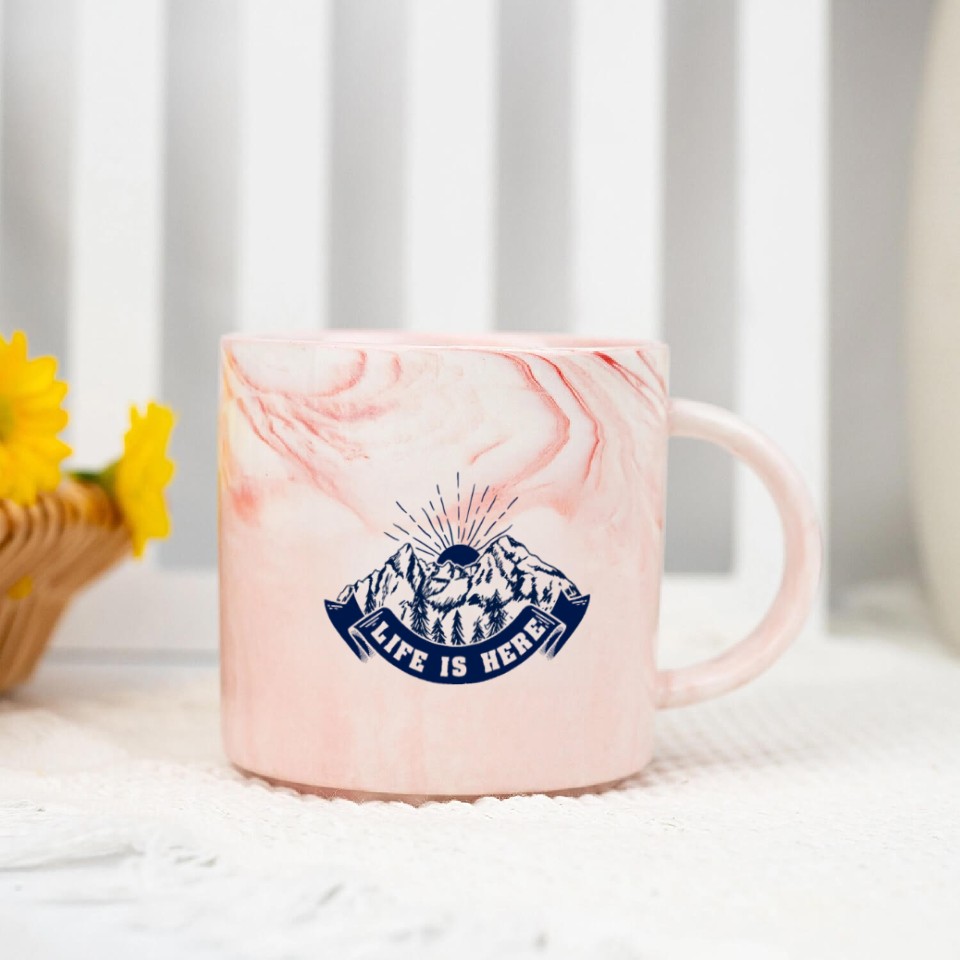 You are contemplating one of the best-selling products Life is Here Nature Lover Hiking Camping Outdoor Marble Mugs For Pink belong theme Marble Mugs at Printblur