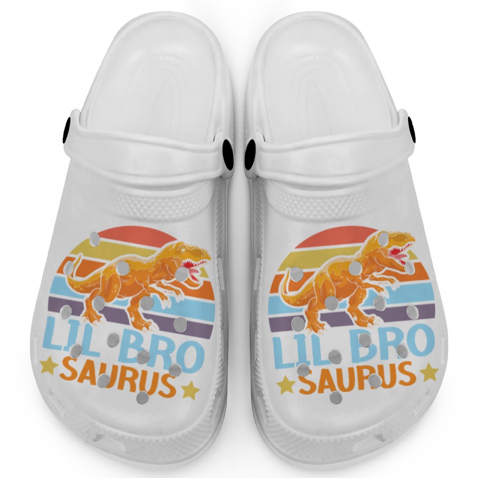 You are viewing an exclusive and elegant product Lil Bro Saurus Best Bro Ever Brotherhood Dinosaur Clogs For Kids WHITE belong theme Clogs at Printblur