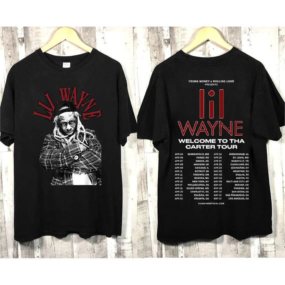The item hot trend you're looking at is Lil Wayne Shirt Welcome To Tha Carter Tour USA Tour 2023 For Men Black belong theme Double Sided T-Shirts at Printblur