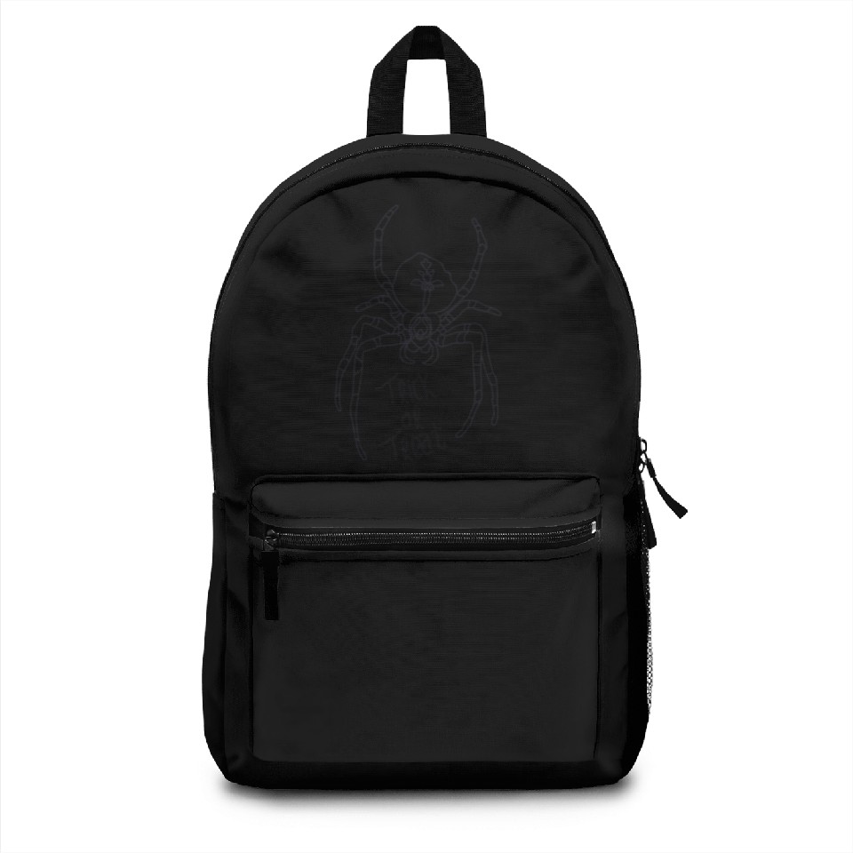 You're taking a peek at the product line art of spider with trick or treat typography Backpacks For Black belong theme Backpacks at Printblur