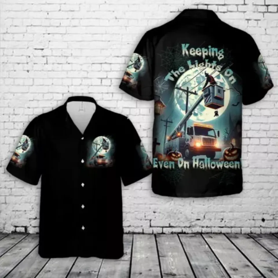 Shop for attractive Lineman Bucket Truck Halloween Hawaiian Shirt or see more Hawaiians products on https://printblur.com right now!