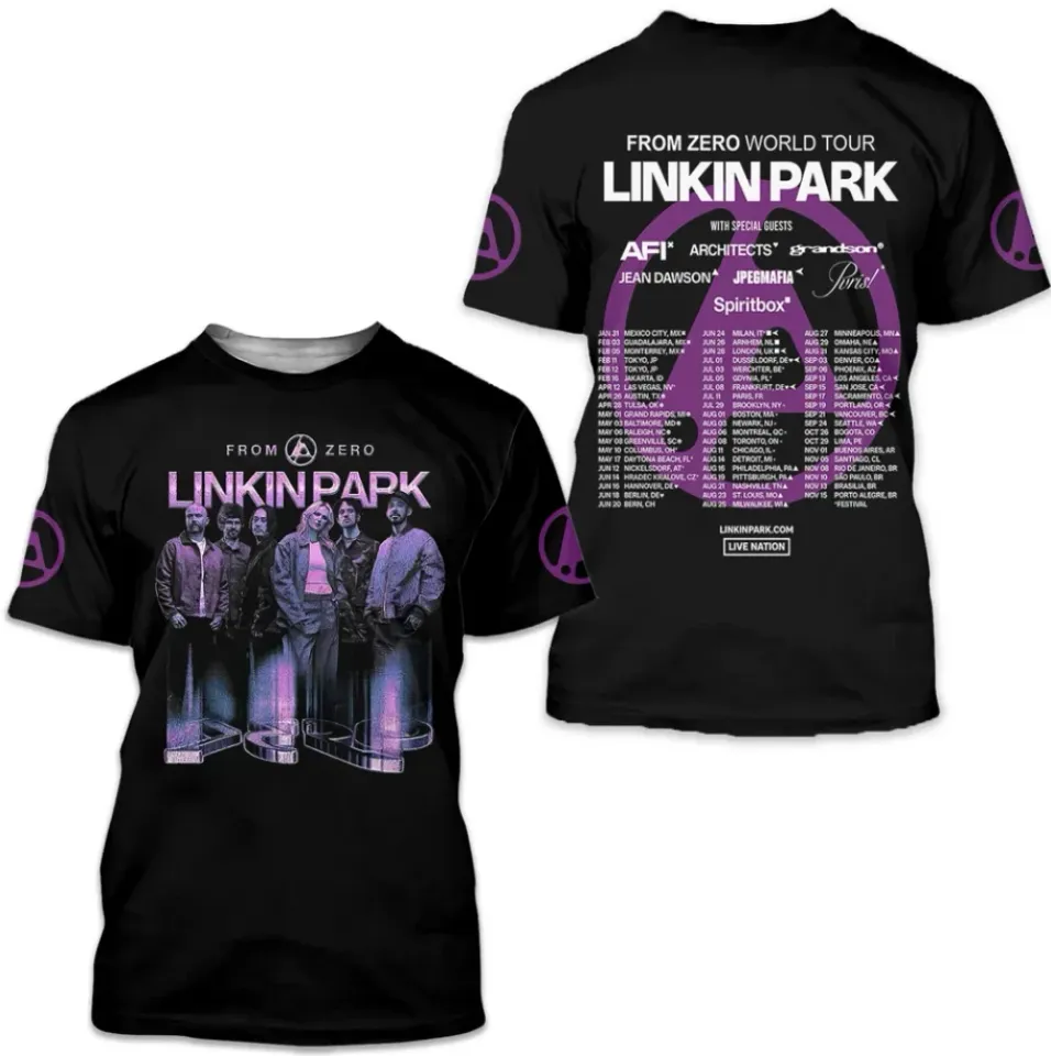 Buy eye-catching Linkin Park From Zero World Tour 2025 With Tour Dates 3D T-Shirt or see more 3D T Shirts products at Printblur shop now to explore many surprises from our shop!