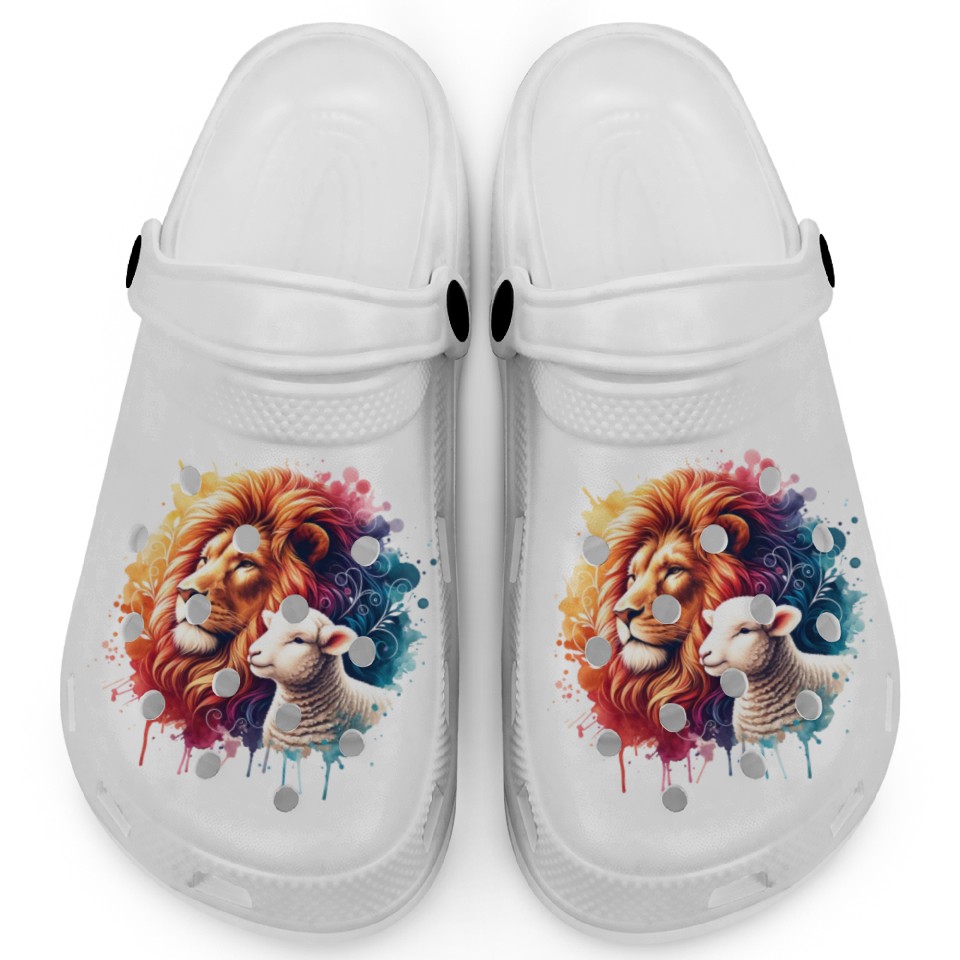 Buy eye-catching Lion and Lamb Christian Watercolor Design Clogs or see more Clogs products at Printblur shop now to explore many surprises from our shop!