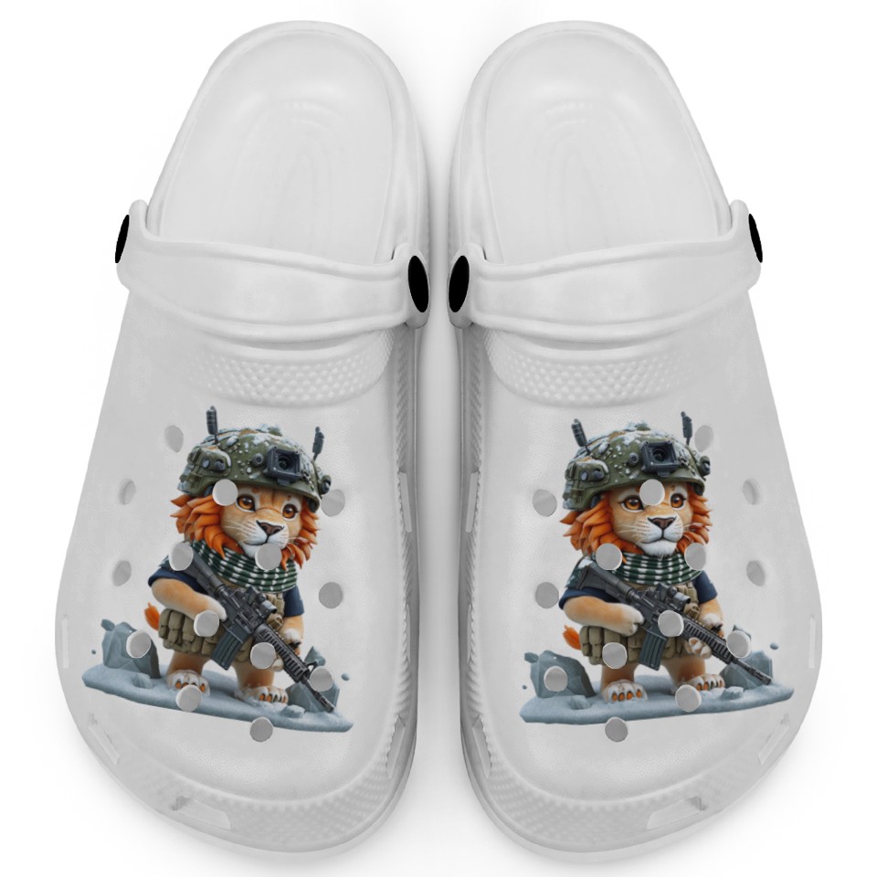 You are seeing a unique and impressive product Lion In Military Clogs For Kids WHITE belong theme Clogs at Printblur