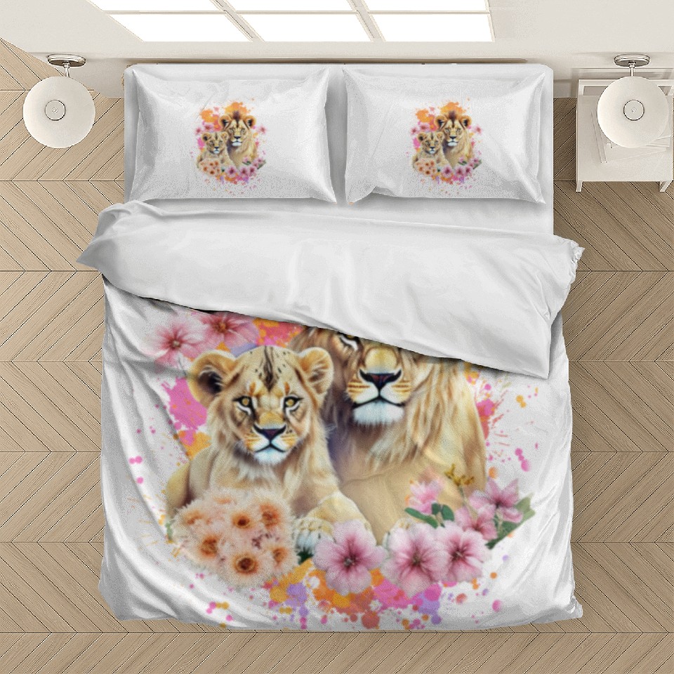 Shop for attractive Lion Mom & Son Cubs with Flower Watercolor Bedding Sets or see more Bedding Sets products on https://printblur.com right now!