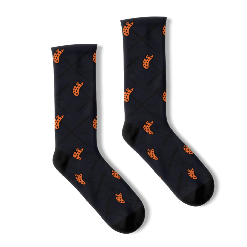 Elevate your sock game with our custom all-over-print (AOP) mid-calf socks. Crafted from a flexible 90% polyester, 10% spandex blend, these socks offer a comfortable, long-lasting fit.