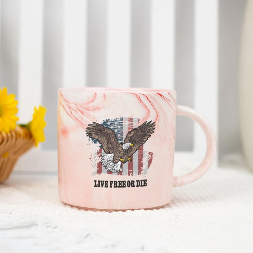 You're searching for a one-of-a-kind product Live Free or Die - Bald Eagle - Grunge American Fl Marble Mugs For Pink belong theme Marble Mugs at Printblur