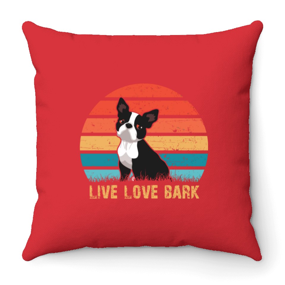 Buy stunning Live Love Bark Retro Vintage Boston Terrier Funny Throw Pillows or see more Throw Pillows products at Printblur right now to receive many amazing discounts!