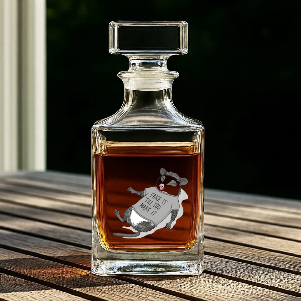 Shop for attractive Live Weird Fake Your Death - Funny Possum Whiskey Decanters or see more Whiskey Decanters products on https://printblur.com right now!