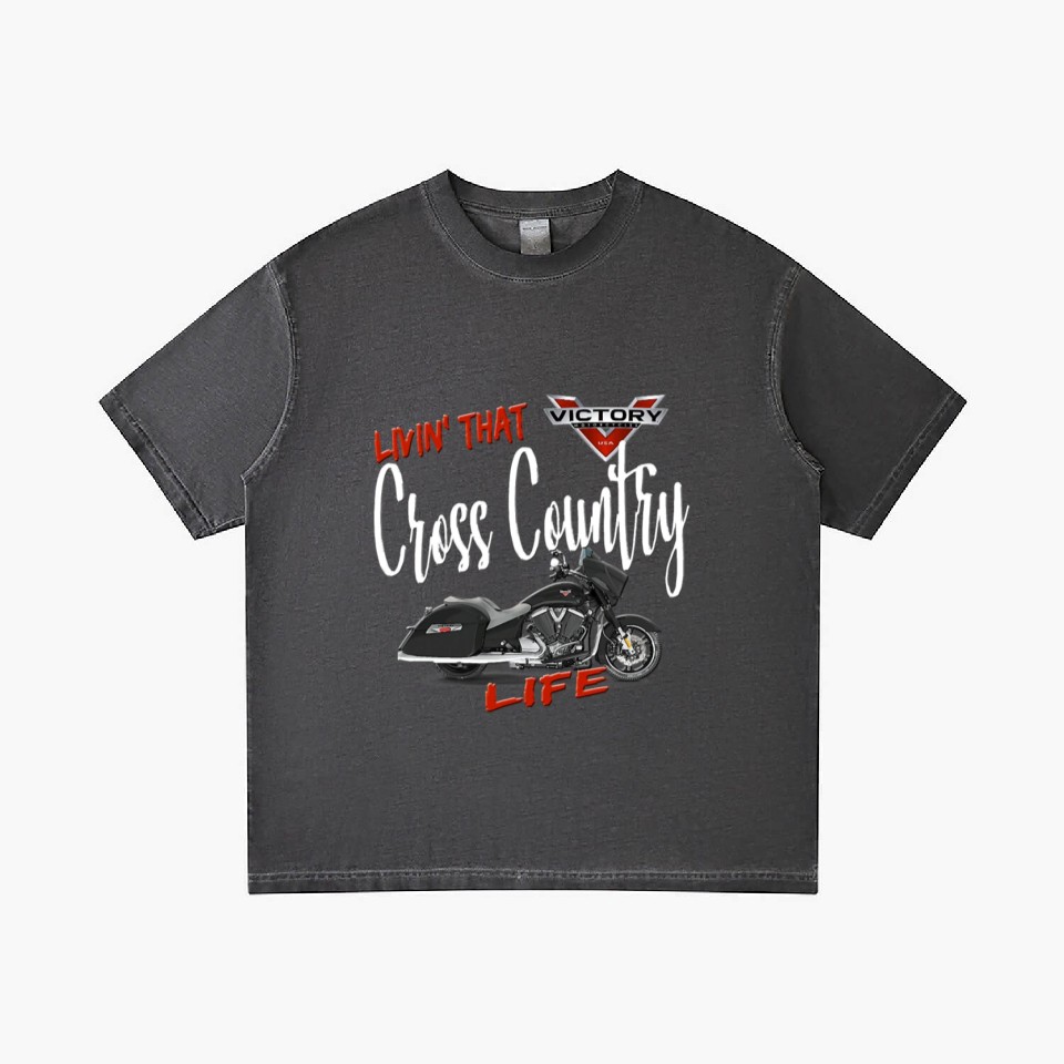You are shopping for a stunning and trendy product Livin That Cross Country Life Motorcycle Gradient T Shirts For Men Washed Black belong theme Gradient T-Shirts at Printblur