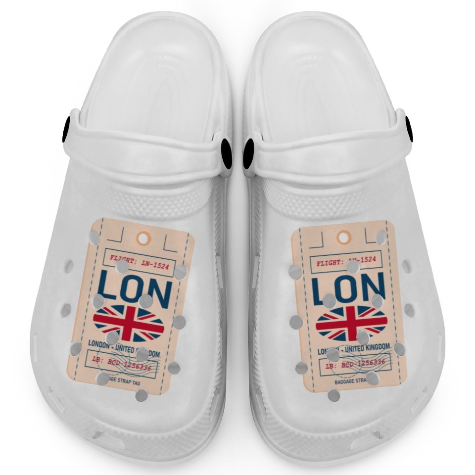 You're searching for a one-of-a-kind product LONDON (LON) Airline Luggage tag United Kingdom Clogs For Kids WHITE belong theme Clogs at Printblur