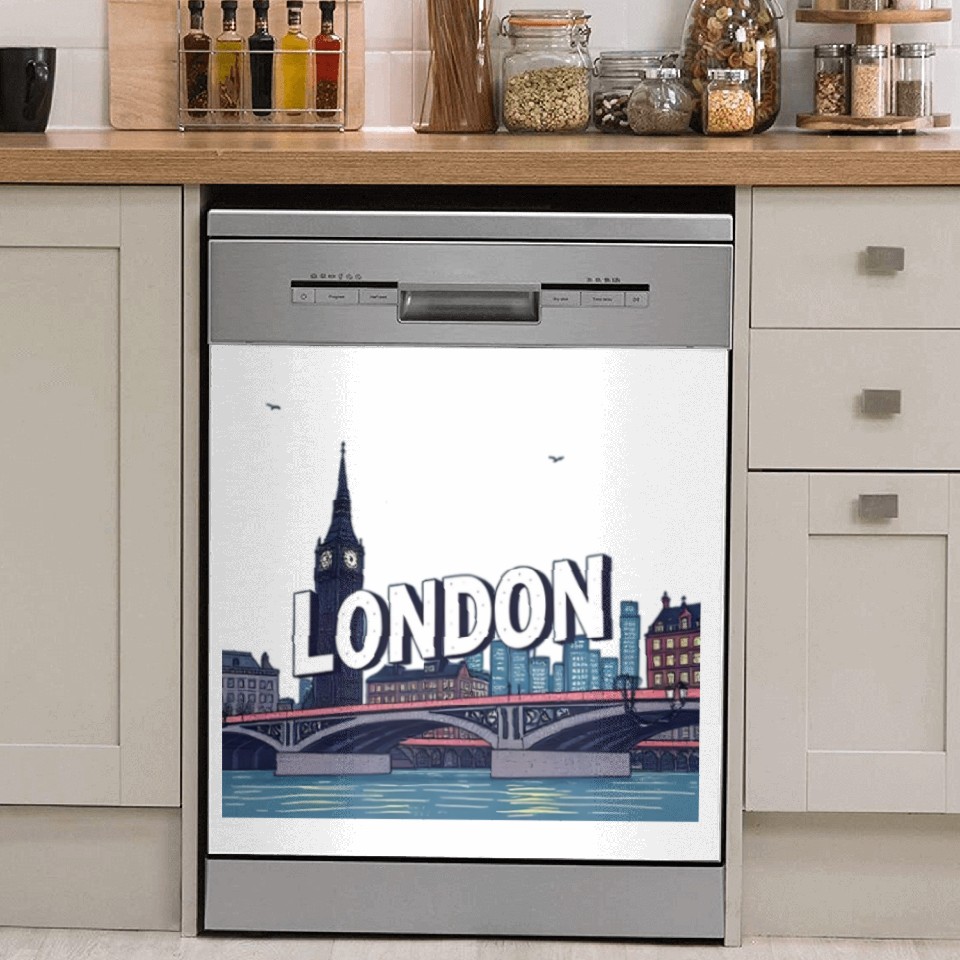 The item hot trend you're looking at is London Night Skyline Illustration Dish Washer Covers For WHITE belong theme Dish Washer Covers at Printblur