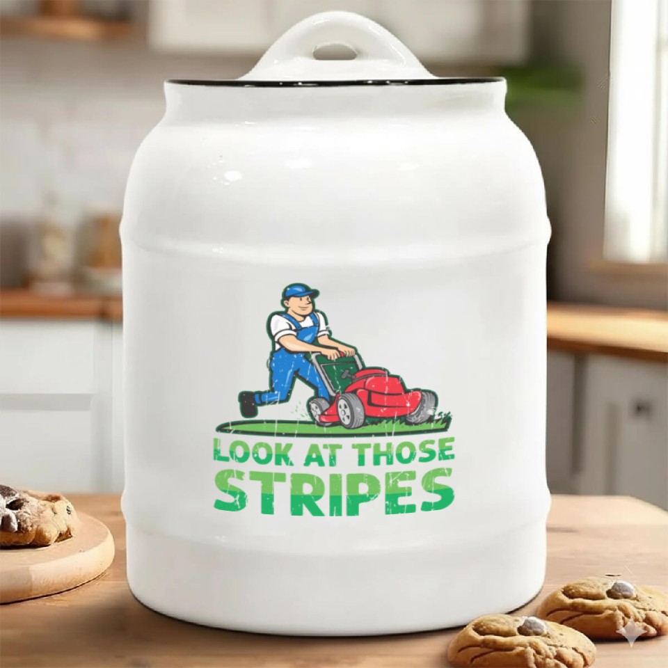 Shop for impressive Look at those stripes - lawn mowing Ceramic Cookie Jars or see more Ceramic Cookie Jars products right now on Printblur to enjoy your happiness!