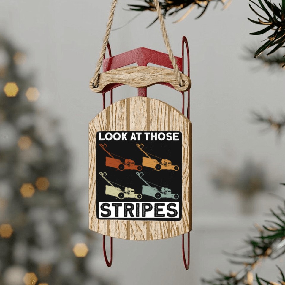 You are viewing an exclusive and elegant product Look At Those Stripes - Lawn Mowing Funny Dad Lawn Sled Ornaments For Black belong theme Sled Ornaments at Printblur