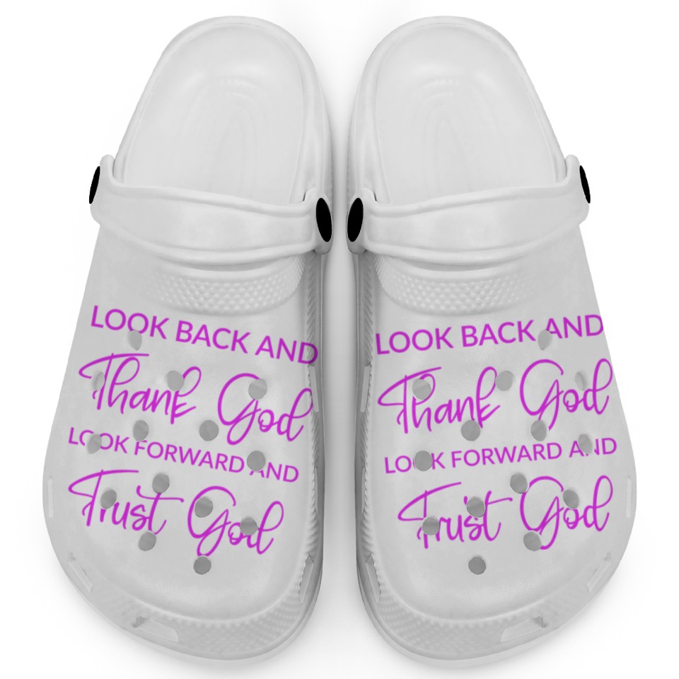 Shop for impressive Look back and thank God look forward and trust God Clogs or see more Clogs products right now on Printblur to enjoy your happiness!