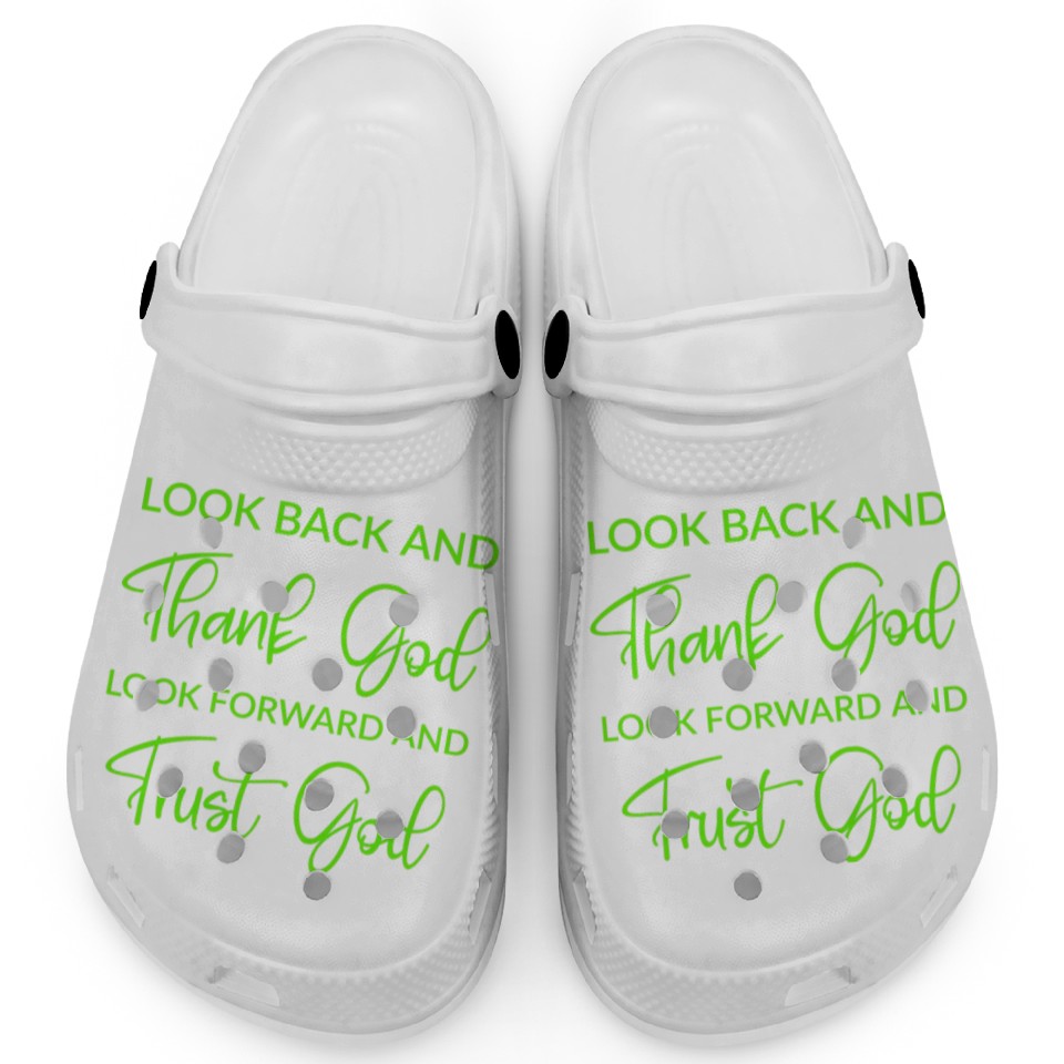 Own fascinating Look back and thank God look forward and trust God Clogs or see more Clogs products now from Printblur shop to enjoy your shopping time!