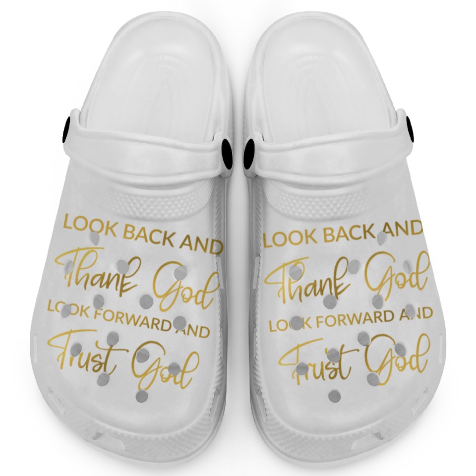 Buy eye-catching Look back and thank God look forward and trust God Clogs or see more Clogs products at Printblur shop now to explore many surprises from our shop!