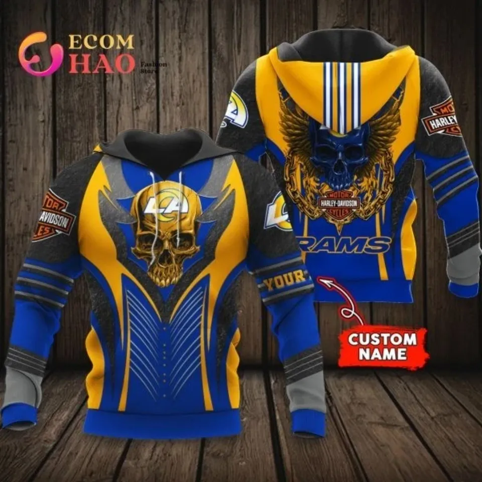 Shop for attractive Los Angeles Haarleyy Davidson Rams Personalized All Over Print 3D Hoodie or see more 3D Hoodies products on https://printblur.com right now!