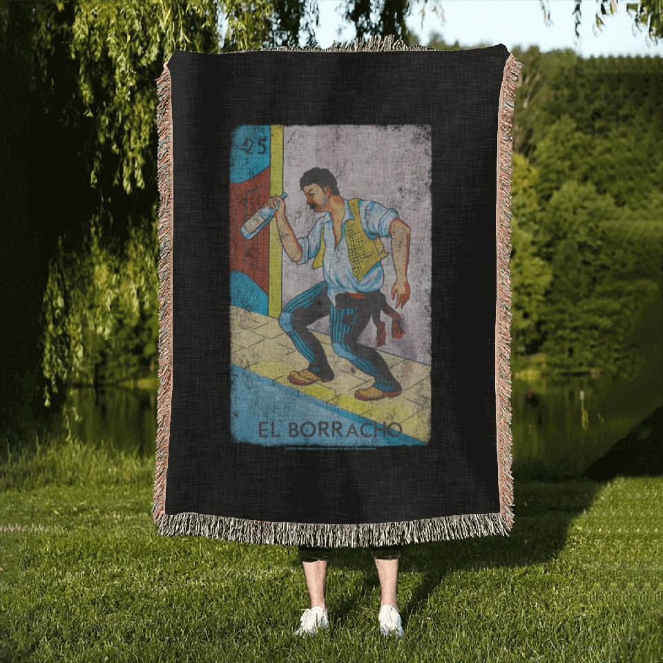 You are viewing an exclusive and elegant product Loteria El Borracho Colorful Tarot Card Woven Blankets For Black belong theme Woven Blankets at Printblur